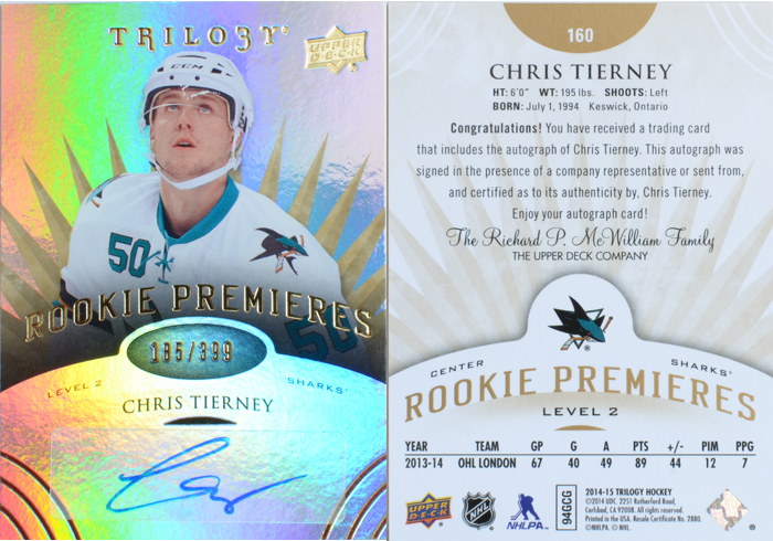 This is Chris Tierney's autograph. This is a Sticker auto.