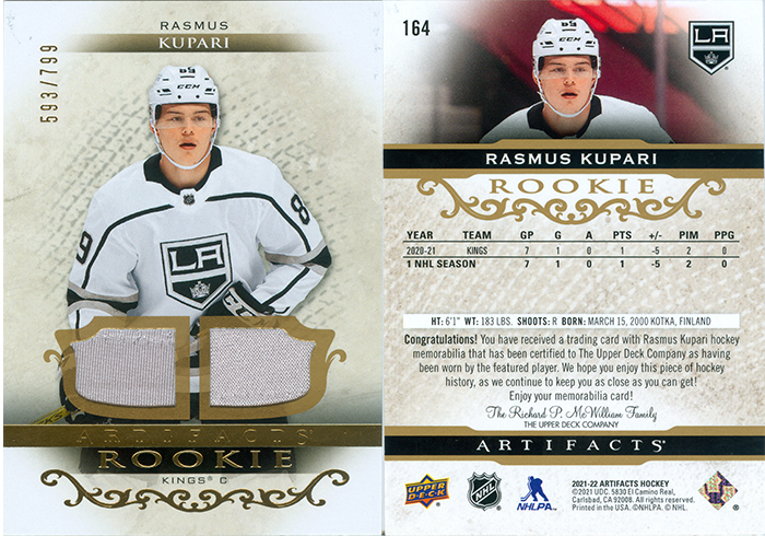 This is Rasmus Kupari's memorabilia card. Card number 164