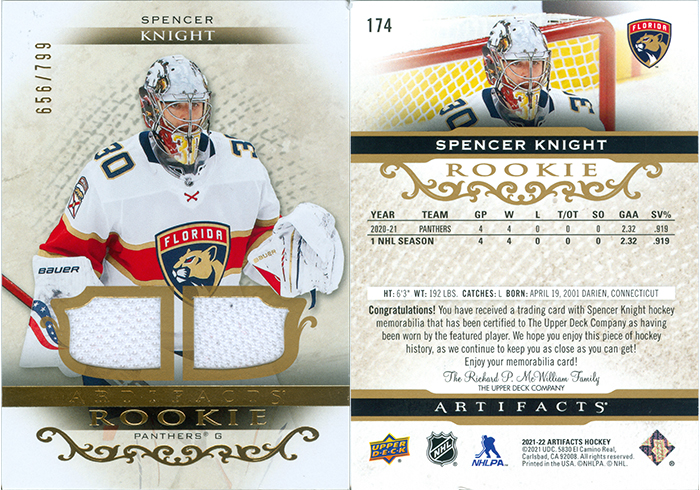 2021 Upper Deck Artifacts Gold Material 656/799 It is worth $25.00.