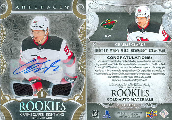 2024 Upper Deck Artifacts Materials Auto Gold 096/199 It is worth $30.00.
