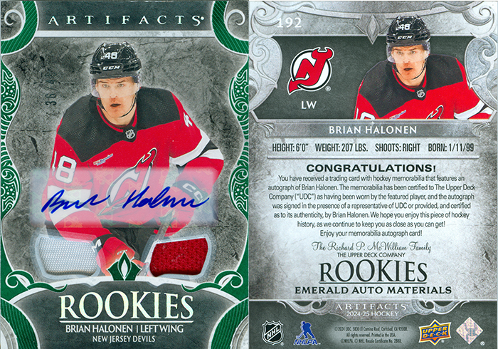 This is Brian Halonen's memorabilia card. Card number 192