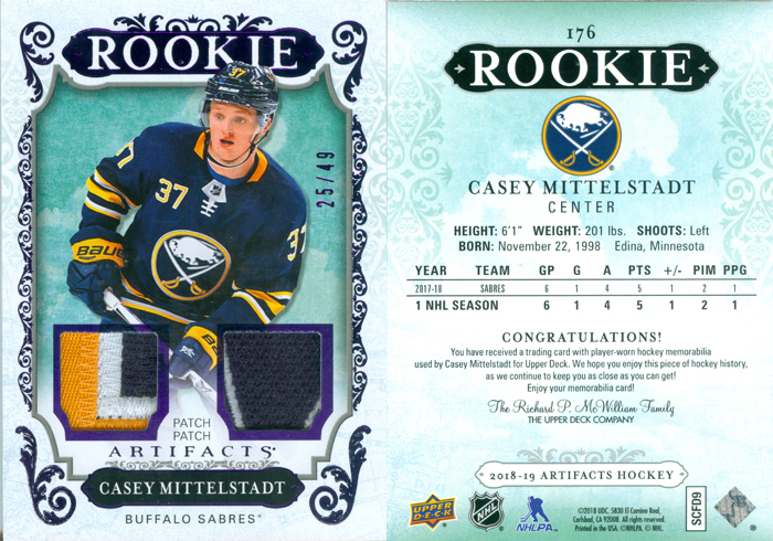 This is Casey Mittelstadt's memorabilia card. Card number 176