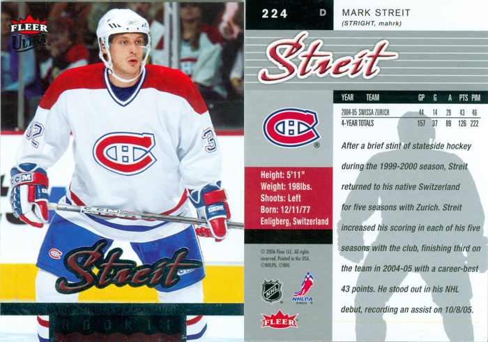 Mark Streit's RC Card.