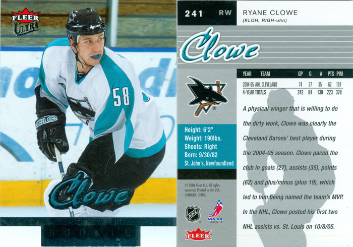 Ryane Clowe's RC Card.