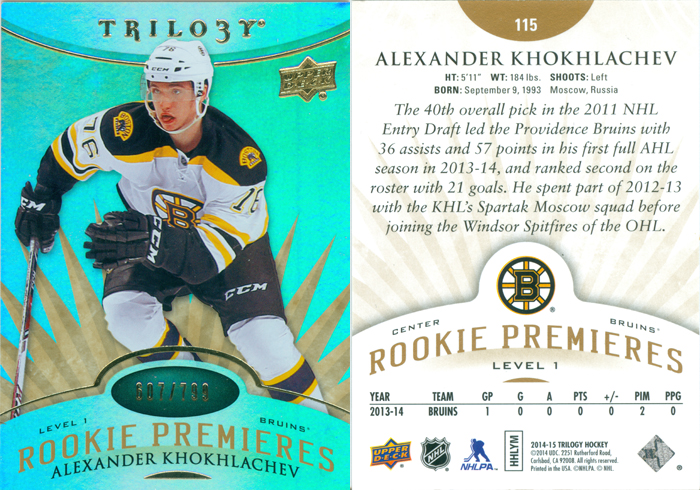 2014 Upper Deck Trilogy #'d to 799 Rookie Premieres card #115 worth $4.00