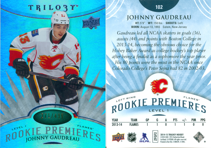2014 Upper Deck Trilogy Radiant Blue card #102 worth $15.00