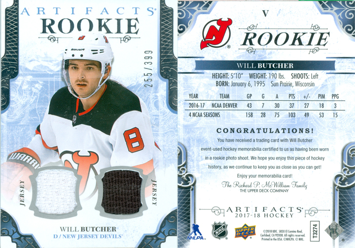 2017 Upper Deck Artifacts Rookie Relic Redemptions card #V worth $15.00