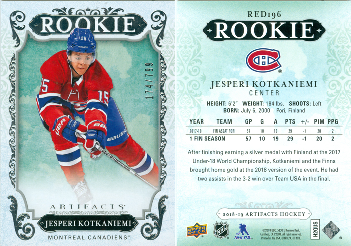 2018 Upper Deck Artifacts card #RED196 worth $25.00