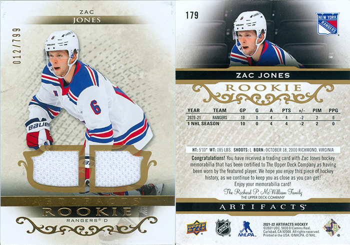 2021 Upper Deck Artifacts Gold Material card #179 worth $10.00
