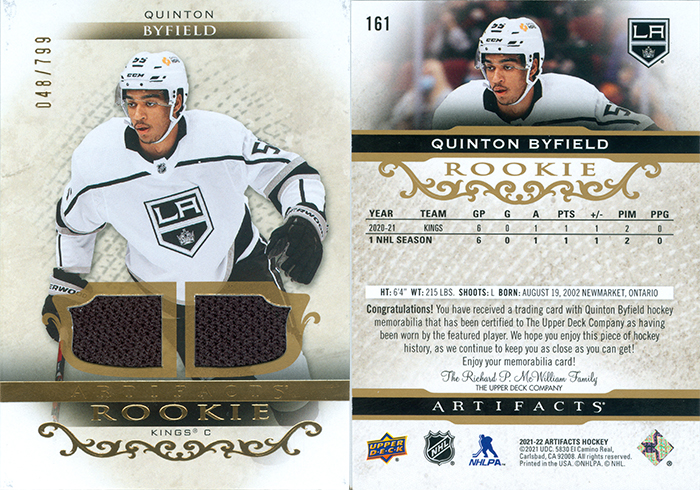 2021 Upper Deck Artifacts Gold Material card #161 worth $25.00