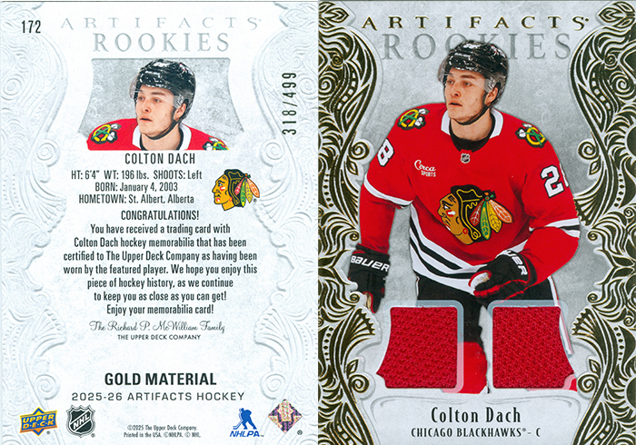 2025 Upper Deck Artifacts Material Gold card #172 worth $10.00