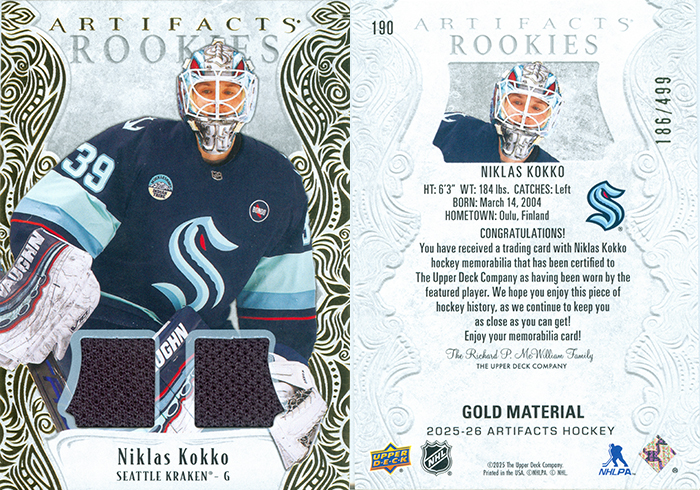 2025 Upper Deck Artifacts Material Gold card #190 worth $10.00