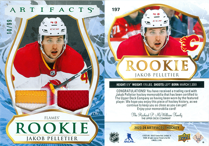 This is Jakob Pelletier's memorabilia card. Card number 197