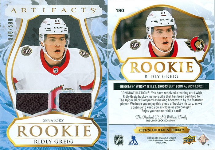 2023 Upper Deck Artifacts Material Gold 540/599 - It is worth $12.00 .