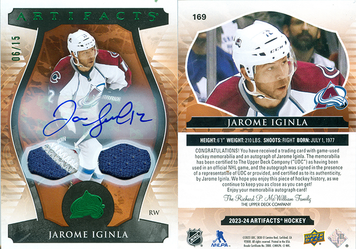 2023 Upper Deck Artifacts Materials Auto Gold 06/15 - It is worth $119.00 .