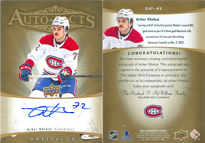 This is Arber Xhekaj's autograph. This is a Sticker auto.