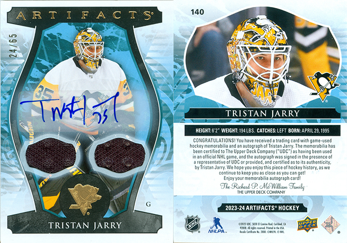This is Tristan Jarry's autograph. This is a Sticker auto.
