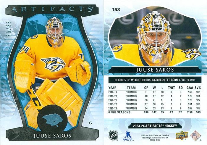 2023 Upper Deck Artifacts Light Blue Steel - Juuse Saros