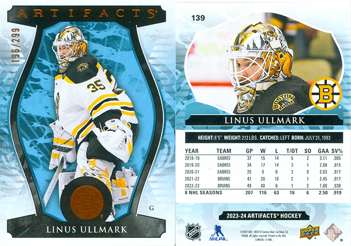2023 Upper Deck Artifacts Copper - Linus Ullmark