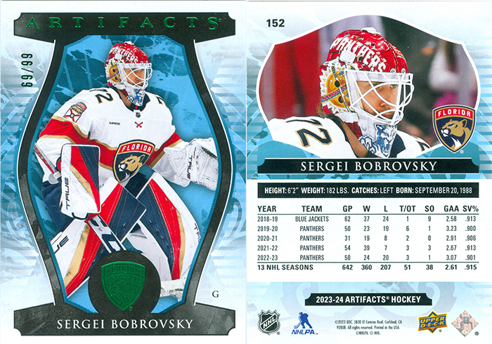 2023 Upper Deck Artifacts Emerald - Sergei Bobrovsky